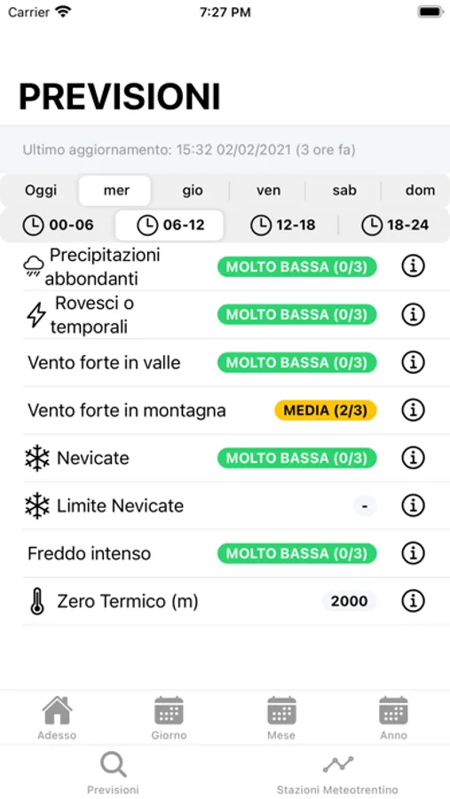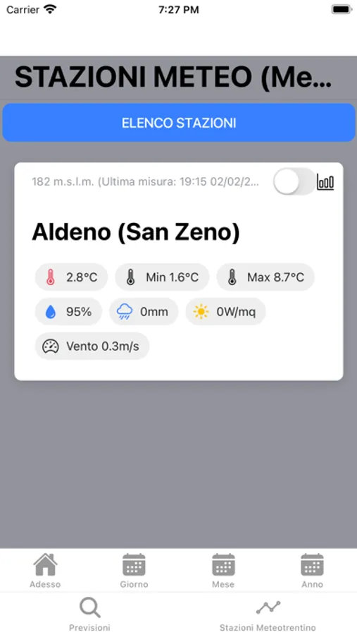 Si possono consultare anche i dati (non validati) delle stazioni meteo di Meteotrentino scegliendo quelle che si desiderano seguire. Per le stazioni di Meteotrentino è possibile visualizzare i dati dell'ultima misura ed i grafici a partire dalla mezzanotte del giorno precedente.