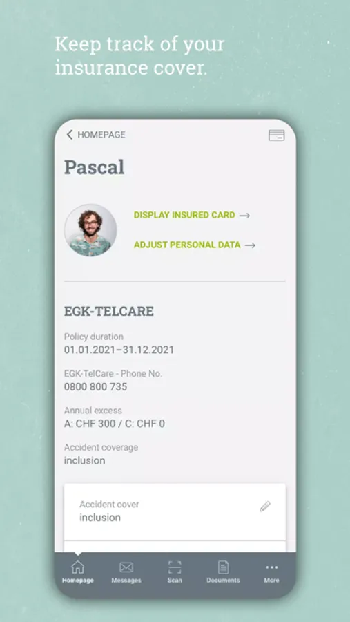 • Change your personal data, your deductible, your accident cover or your EGK Care doctor yourself – without having to go through the agency.