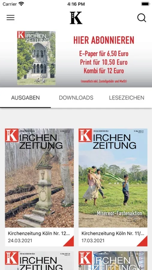 Die Kirchenzeitung für das Erzbistum Köln informiert wöchentlich.