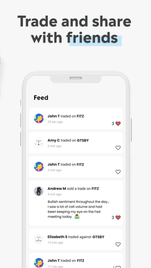 Check out what your friends are trading, learn from their actions, and be part of a wider community.