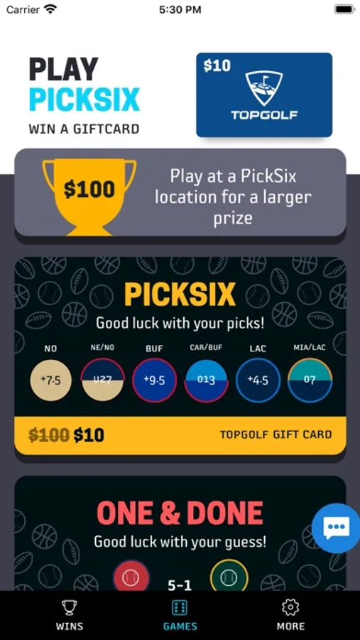 Best of all, Play PickSix is absolutely FREE to play and win. When you win, the gift card is free too. Free, free, free! It’s a fun and winning combination for all. And as an added bonus, there’s another game in the app called One & Done. All you have to do is guess the exact score of an upcoming game for a chance to win a gift card. Oh, and just like Play PickSix, One & Done is also free.