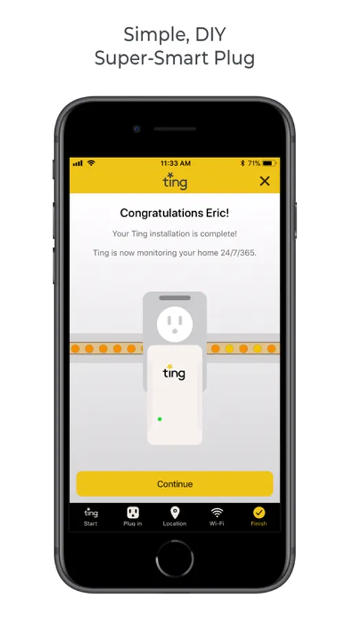 Beyond providing peace of mind for fire safety, Ting provides detailed analysis of your home’s power, and notifications of power outages, internet outages, and power surges that can damage your sensitive, electronic devices. Over time, Ting’s machine learning algorithms will also provide important notifications on the performance of key appliances like your HVAC. Within a few minutes of opening the box, you’ll have a fitness tracker for your home protecting what matters most!