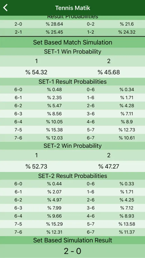 - Simulation results for ATP and WTA Singles are calculated and shown separately in Main Menu.
