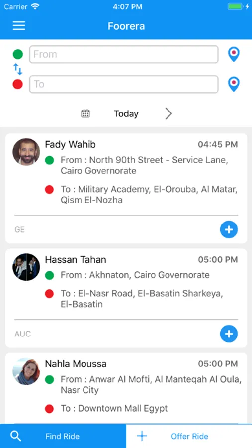 Foorera is a carpooling App that connects car owners (drivers) to riders (passengers) who are taking the same route, to help car owners save fuel money and passengers have affordable, safe, and comfortable everyday rides.