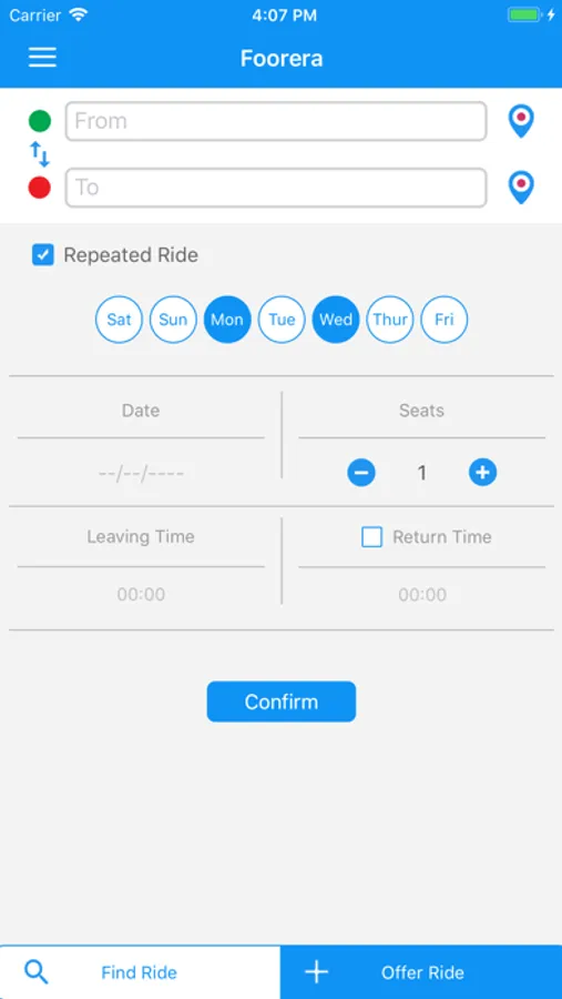 You could add your rides’ schedule on Foorera App and riders will send you requests to join your ride; you will have the freedom to accept the requests yourself.