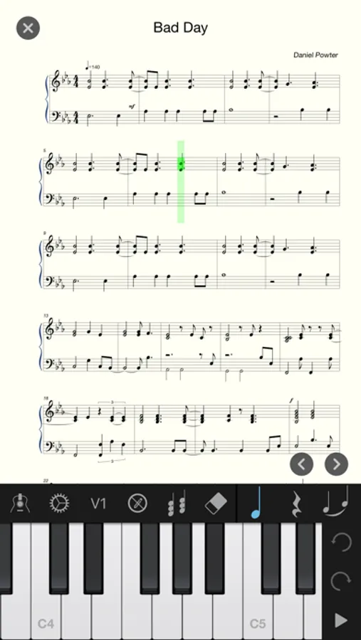 Use piano keyboard to create your own sheet music score. Put all your music compositions in your pocket and play or edit them in any time. Piano+ can handle not only a simple piano score, but also a complex symphony score. It has a clear user interface friendly to a beginner, and a powerful tool set for a musician. Just try to touch down the piano keyboard to become a great music composer.