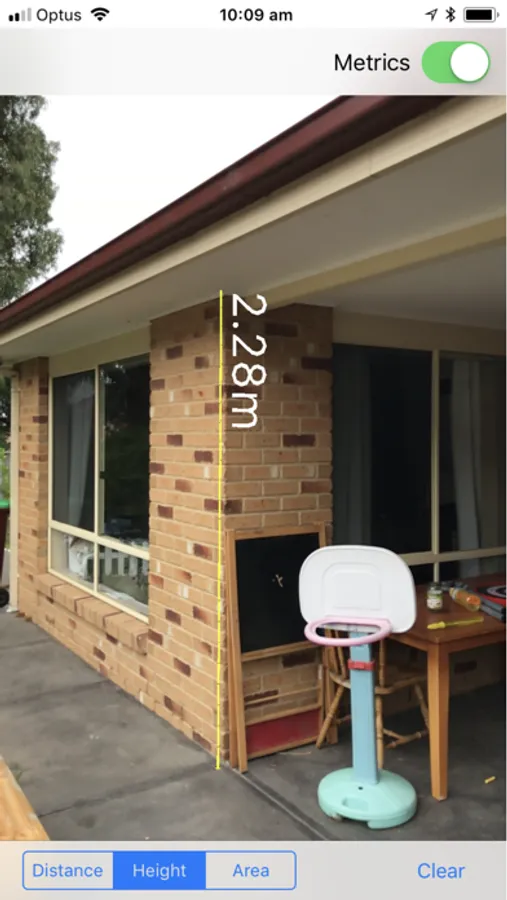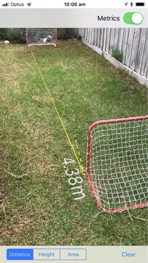 In the height mode (requires in app purchase), tap the screen to place a marker on the floor and then raise your phone until the yellow line reaches the height you want to measure and tap again to view the result.