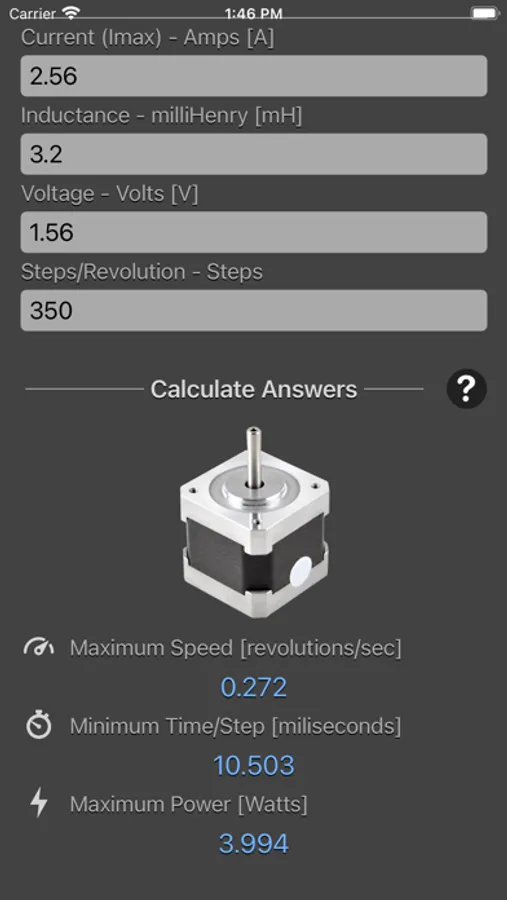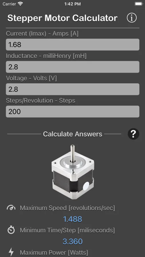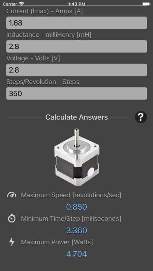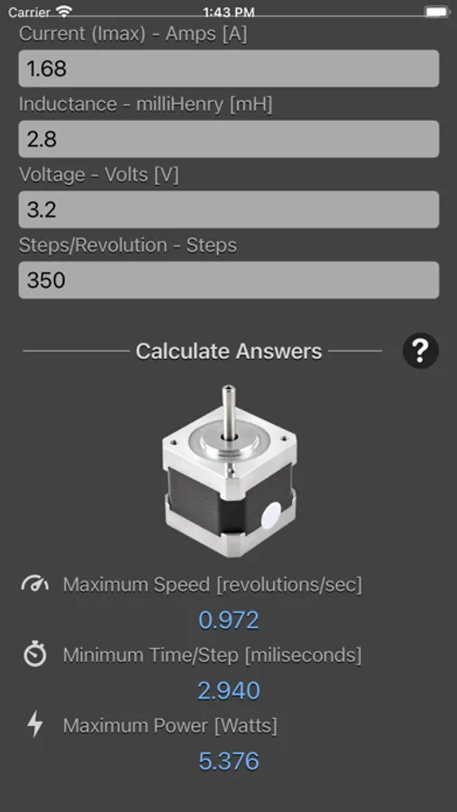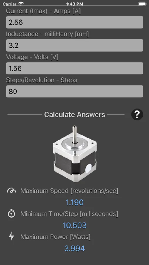 Stepper Motor Calculator is designed to calculate the maximum speed of a stepper motor as well as the minimum time per step and the maximum power dissipation.