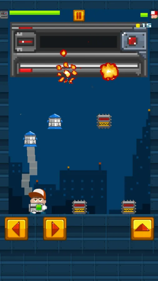 Beat up boss with guns and rockets that falls from the sky. Launch missle rockets!