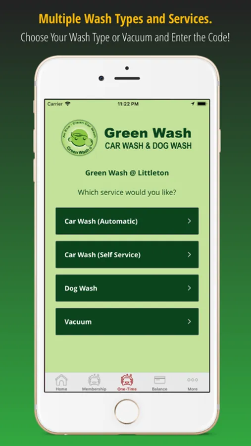 Our app is the best way to stay connected with Green Wash and make your visit as efficient and convenient as possible. With a few simple taps, you can purchase any of our automatic or self-serve washes, dog washes, or even vacuums on site directly through the app.