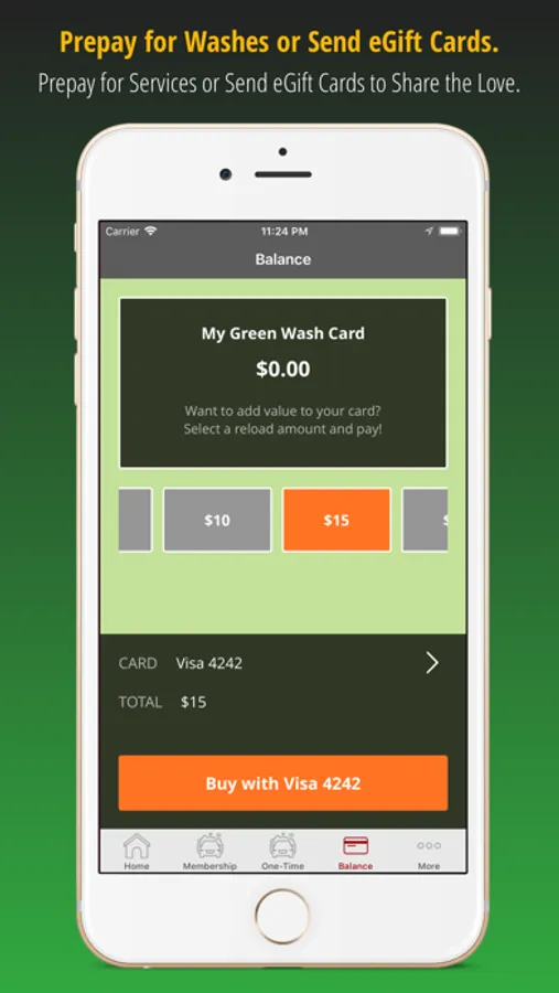 You can also pre-pay for services on your Green Wash Card inside the app or send eGift cards to friends and family for use within the app! Don't miss our fun and addictive mobile game, too, where you can compete against your friends and family to earn that spot on the top of the leaderboard... and earn some great rewards along the way!