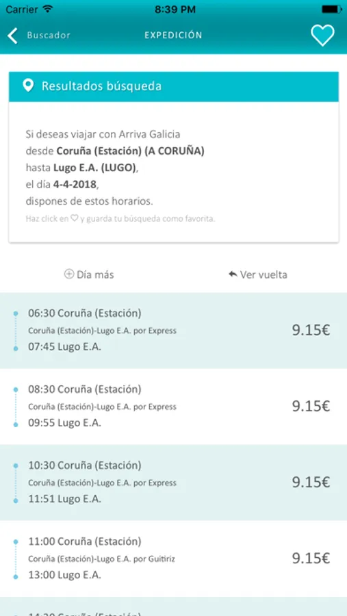 Podrás consultar también las paradas más cercanas y los trayectos para pasan por una determinada parada, además de poder configurar tus propias paradas favoritas.