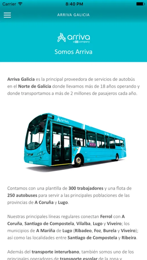 Aplicación oficial de ARRIVA GALICIA. Desde ella podrás consultar los horarios de todos los trayectos operados por ARRIVA en Galicia.
