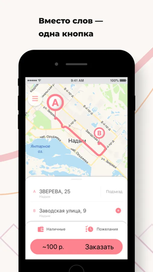 Закажите ViP Taxi в городе Надым через приложение. Это в 3 раза быстрее, чем по телефону! Между желанием доехать до нужного места и поиском автомобиля — пара секунд.