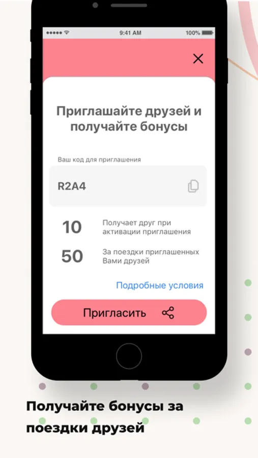 Приглашайте друзей в приложение и зарабатывайте бонусы с помощью реферальной системы. Оплачивайте ими и экономьте на поездках.