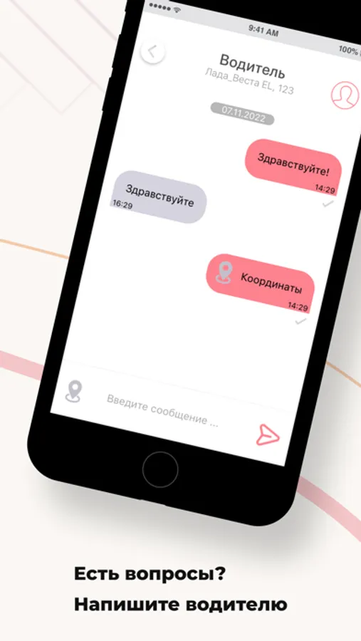 Спросите в чате приложения, где он находится, или отправьте ваши координаты с помощью одной кнопки.