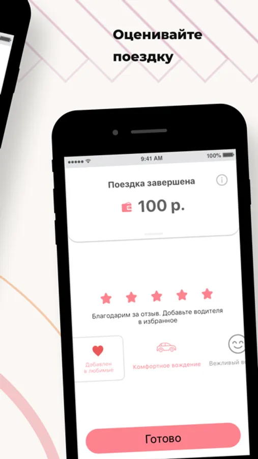 Поставьте оценку водителю, напишите отзыв или выберите реакцию из готовых шаблонов. Посмотрите детализацию платежей после поездки.
