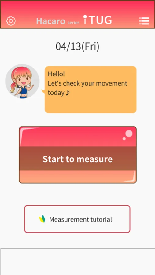 From the "Hacaro" series, an application to measure "Timed Up and Go Test (TUG)" was born.