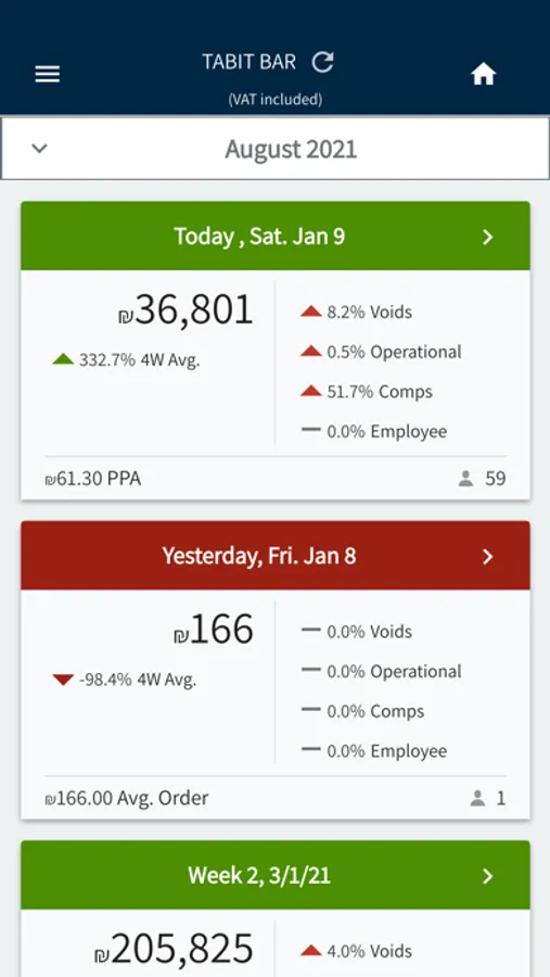 View today’s sales comparison to past dates, compare between months and years. View performance ranking and projected forecast for current month.