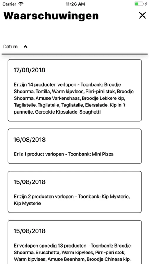 De Foodmanager app is ontwikkeld voor bedrijven die werken met etenswaren. In de Foodmanager app kunt u op gemakkelijke wijze snel een overzicht van uw voorraad krijgen. In de app wordt gewerkt met drie verschillende kleuren. Groene producten zijn nog geruime tijd houdbaar, oranje producten naderen de houdbaarheidsdatum en van de rode producten is de houdbaarheidsdatum verstreken. Via het admin gedeelte in de app kunt u zelf al uw producten invoeren en daarbij kiest u zelf het aantal dagen dat het product houdbaar is (rood) en na hoeveel dagen u een eerste waarschuwing wilt ontvangen dat het product bijna niet meer houdbaar is (oranje). Wanneer een product in de app van kleur verandert ontvangt u daar ’s ochtends tevens een pushbericht van.