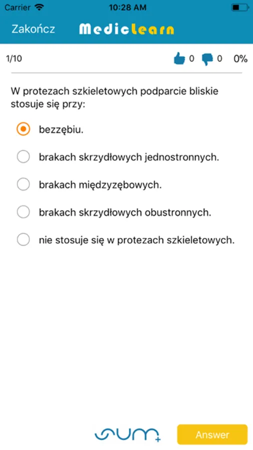 Finding MedicLearn application means that you are either preparing for exams to a medical school or are passionate about knowledge. The Medical University of Silesia (SUM) prepared this application for students to help them verify their knowledge at any time. If you are not a SUM’s student, you still can use our application without any limitations. We are pleased to share our professional knowledge and experience with you. Both our database of test questions and the list of topics are expanding rapidly.