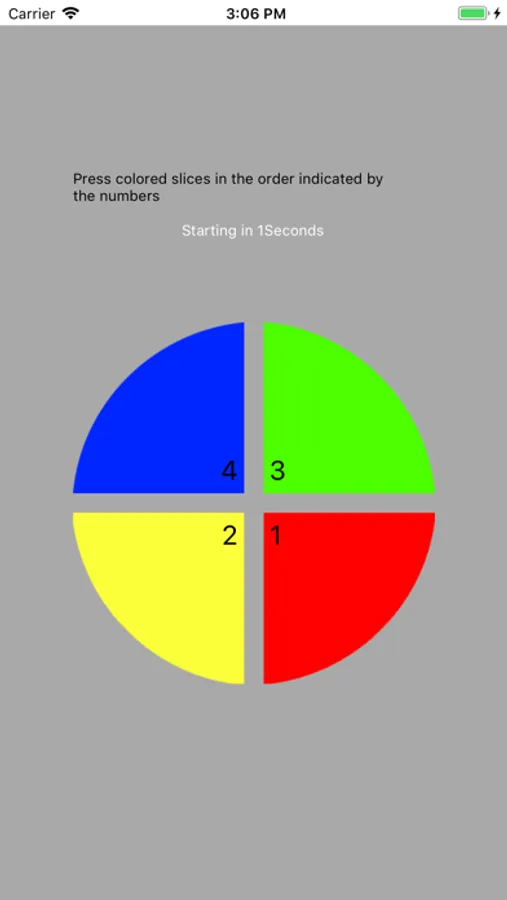 Test memory color and numbers coordination. Press colored slices i the orders indicated by numbers.