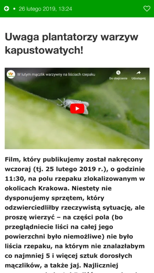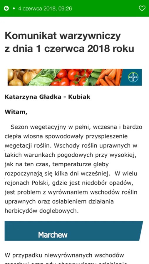 Dzięki aplikacji użytkownik nie musi przeszukiwać codziennie wielu stron internetowych, aby dotrzeć do najnowszych komunikatów warzywniczych. Aplikacja zbiera je od różnych firm: doradców warzywniczych, producentów środków ochrony roślin i nawozów oraz innych podmiotów, które przygotowują porady i informacje dla rolników.