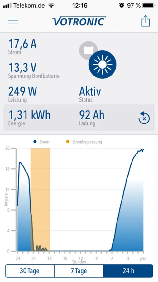 - Eingeladene Solar-Kapazität (Ah) & Solar-Energie (Wh)