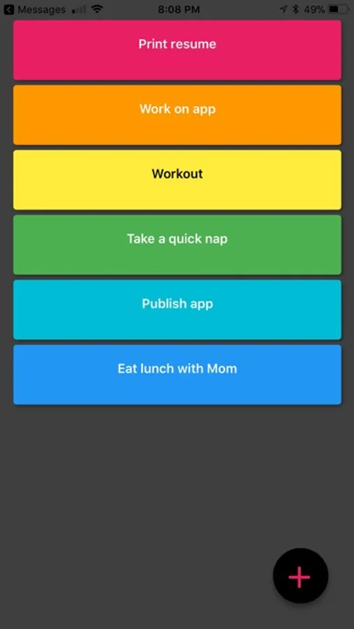 This is a simple ToDo list app which is intended to be used daily for small numbers of ToDos. It helps you decide which ToDos to do first by having sortable, customizable ToDos. I hope you enjoy this app.