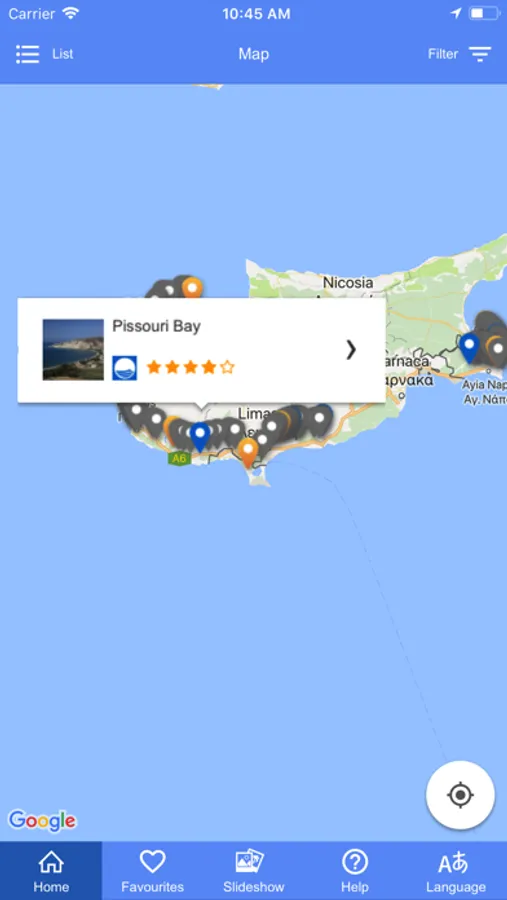 15 beaches (135 in full app version) at your fingertips are ready to be explored. Starting from the picturesque Scouts Beach in Famagusta and ending at Kryoneri Beach in Kato Pyrgos you can discover: