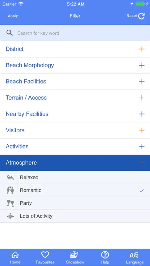 • If you are a couple who want to get away from the busy beach scene, you may choose ‘Few’ under Visitors and ‘Romantic’ under Atmosphere