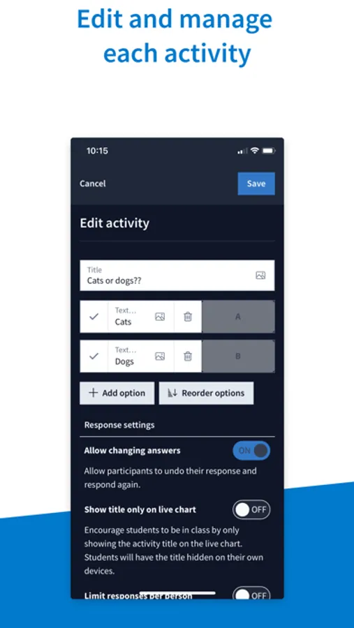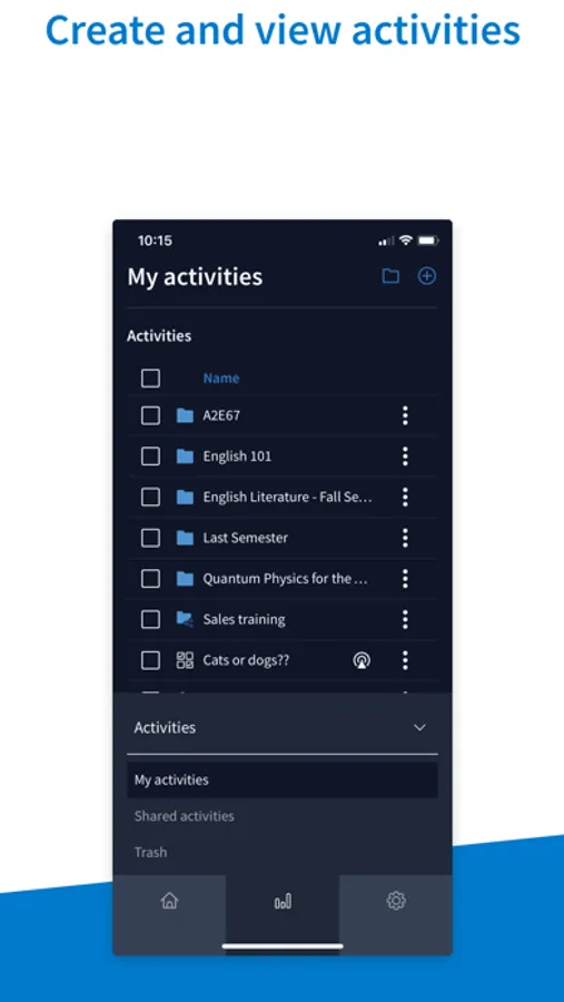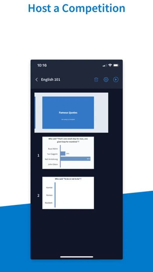 With the Poll Everywhere Presenter app, you can create, edit, group, and present all from your phone or tablet. You can also configure settings and contact support.