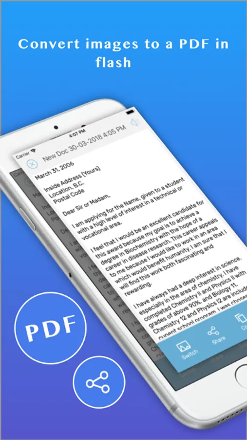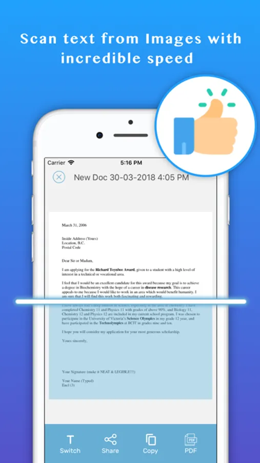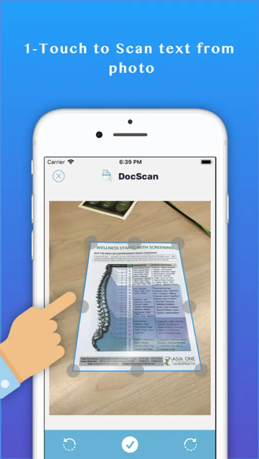 1 Touch to scan photo to text or select a photo from your camera roll. Easily preview, rearrange, crop,