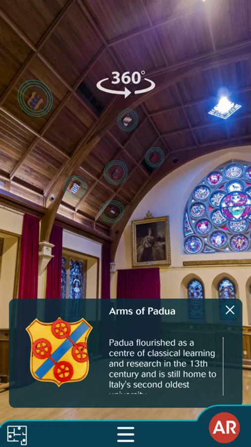 You can explore the heraldic plaques dotted around the ceiling of the Great Hall with our interactive 360 viewer to find out what they symbolise and where they all came from.
