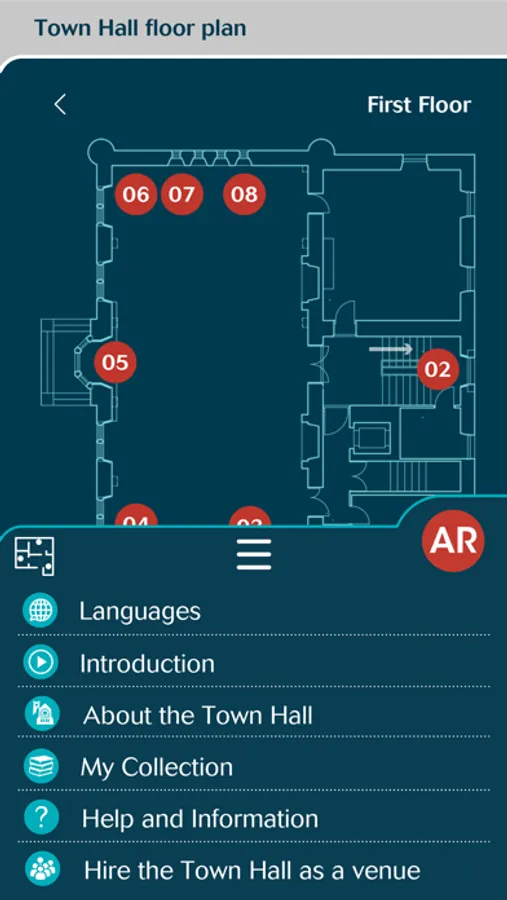 A floor plan will guide you to the places of interest around the Town Hall and the AR trigger locations.