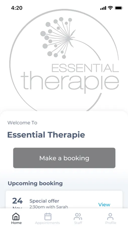 The Essential Therapie app makes booking your appointments and managing your loyalty points even easier. You're just a few taps away from feeling good and looking great!