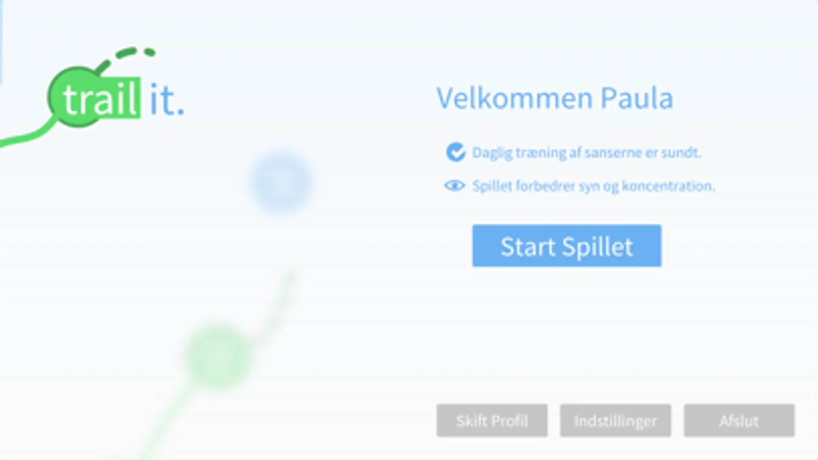 Trail it er et spil som træner dit syn og din koncentrationsevne. I spillet forbinder man cirkler i rækkefølgen "1-2-3-4" eller "1-A-2-B" der er fordelt i tilfældige mønstre på skærmen. Trail it er en digitalisering af Trail Making Test, som er en neuropsykologisk test man bruger til at diagnosticere og træne visuel negligering. Dette gør Trail it ved at måle din reaktionstid på henholdsvis højre og venstre side af skærmen.