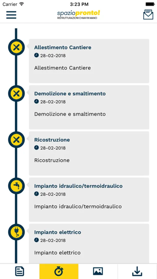 Timeline aggiornata in tempo reale con i vari step dei lavori, già ultimati oppure programmati per una data certa;