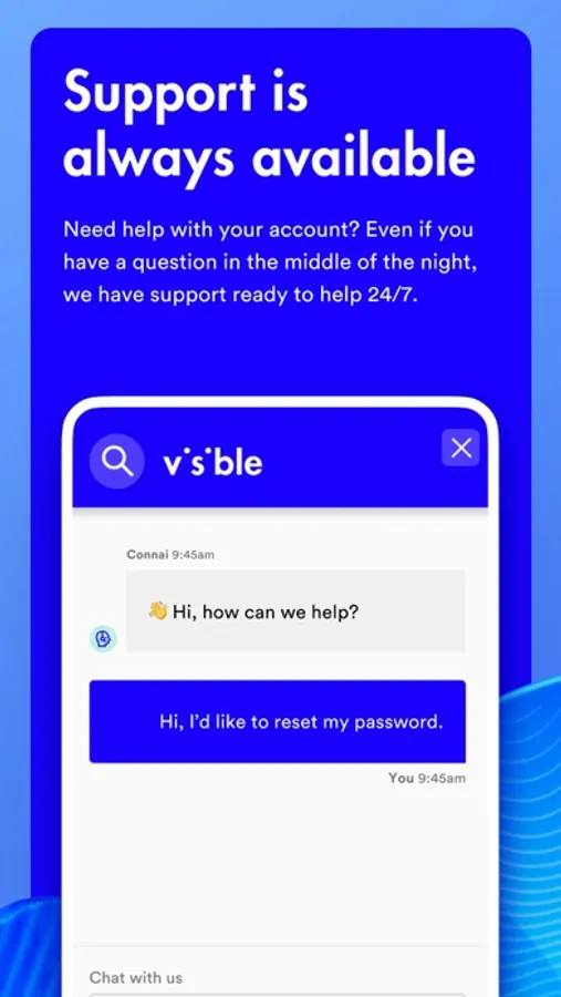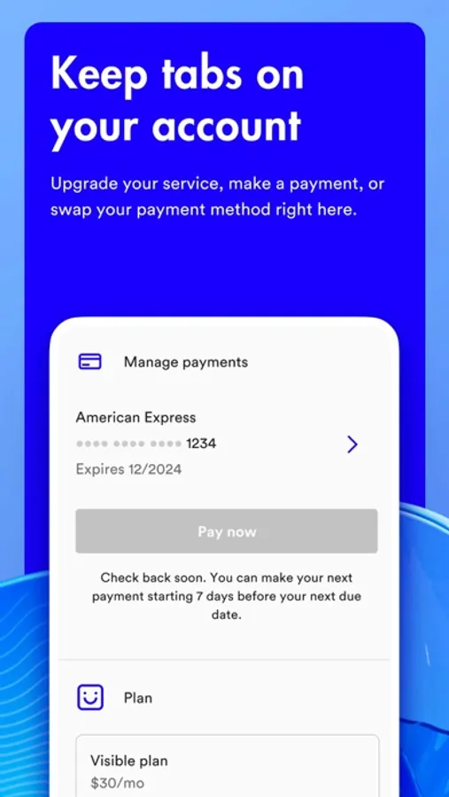 The Visible app makes it easy to manage your service. Make a payment, upgrade your plan, or get 24/7 help in a few taps. Here’s a glimpse of what the app has to offer: