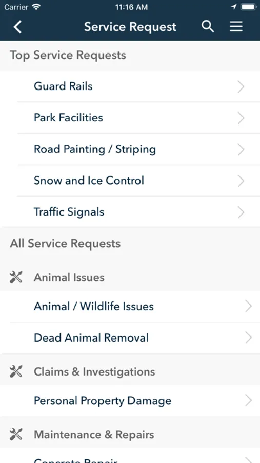 * The app also has the ability to find your Service Requests, articles on services, county residential properties and property owners.