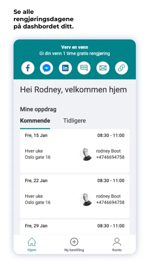 Skulle det være noe, kan du enkelt ta direkte kontakt med din renholder. Siden våre partnere er selvstendige, støtter du uavhengige mikro-bedrifter i ditt nærområde når du bestiller.