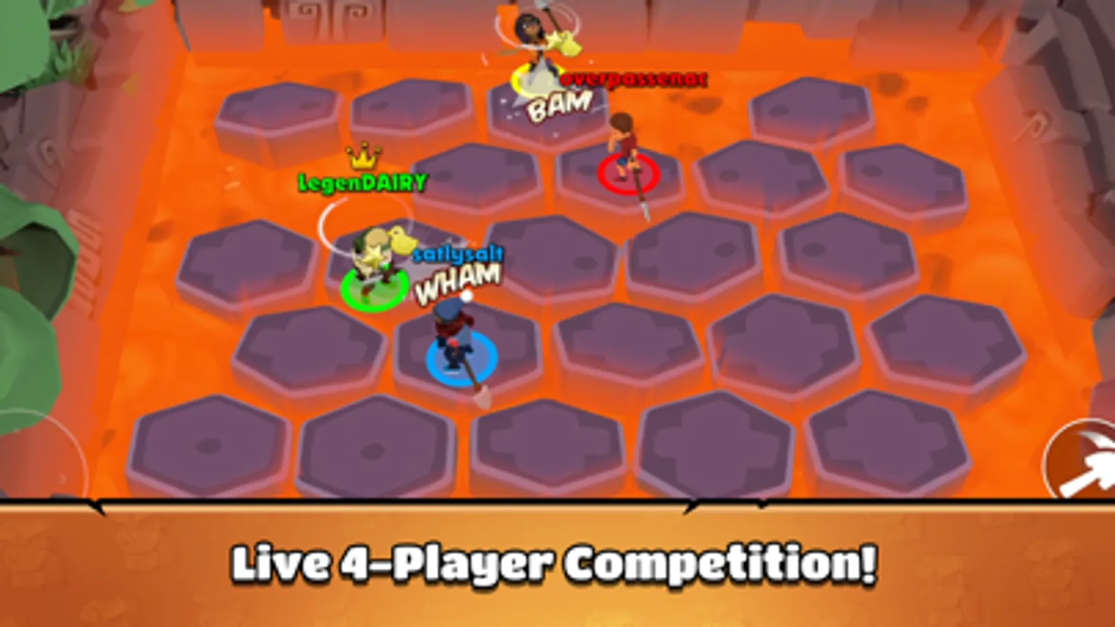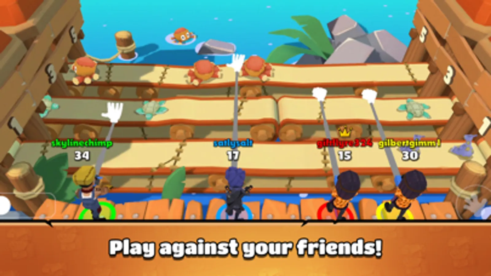Outrun boulders, race through falling rocks, and climb vines faster than your opponents to WIN! Knock the other Castaways off sinking tiles or bump them into sharks to take first place.