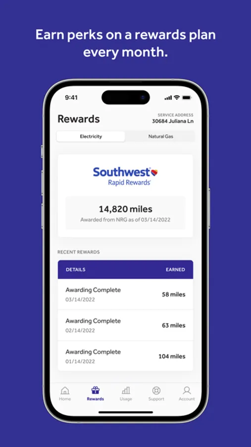 • Track your NRG perks - travel points/miles (redeemable with our partners), charitable contributions, or cash back