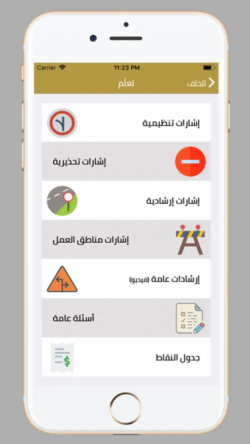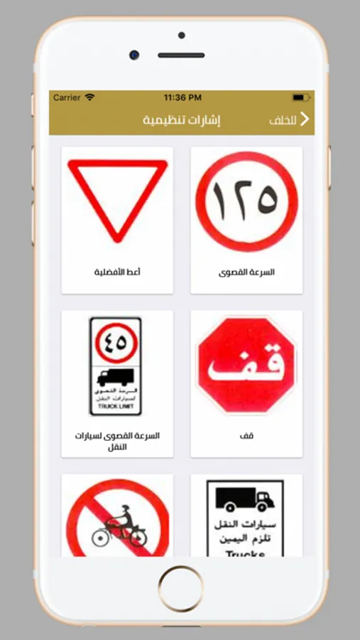 يحتوي التطبيق على القائمة الكاملة للإشارات المرورية المعتمدة في المملكة العربية السعودية والتي بطبيعة الحال تهدف إلى توجيه وإرشاد قائدي المركبات