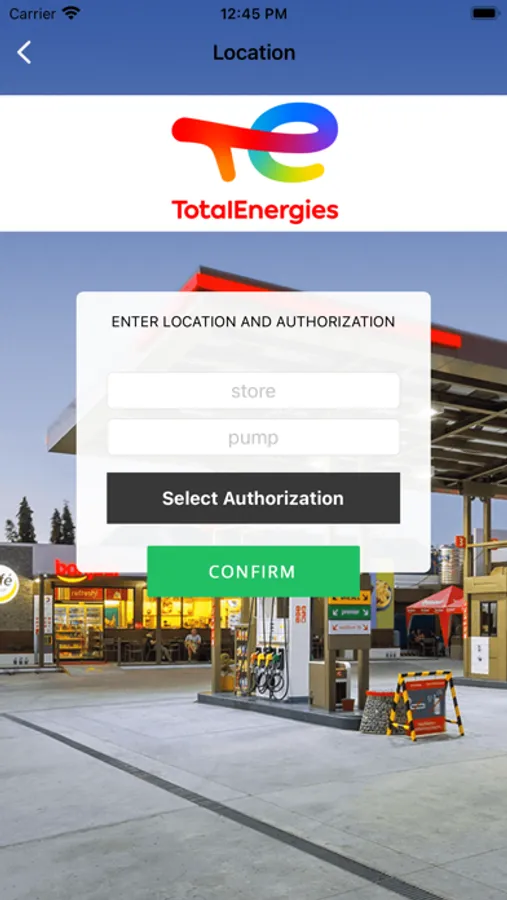 Confirm your location and enter the pump number and quantity. Pump your fuel.