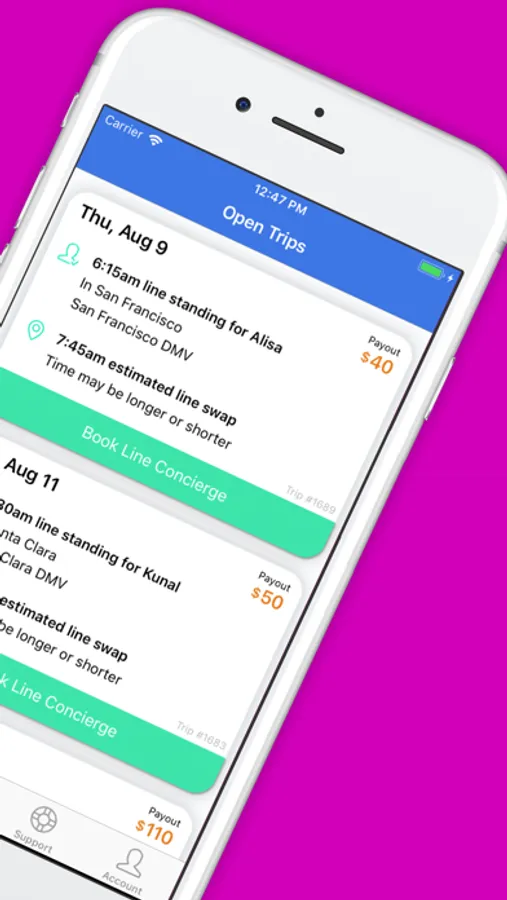 In this version of our concierge app, you'll be able to book clients who've booked our road test concierge service, our DMV line concierge service, and our passport concierge service.