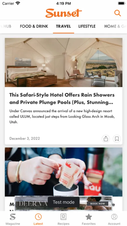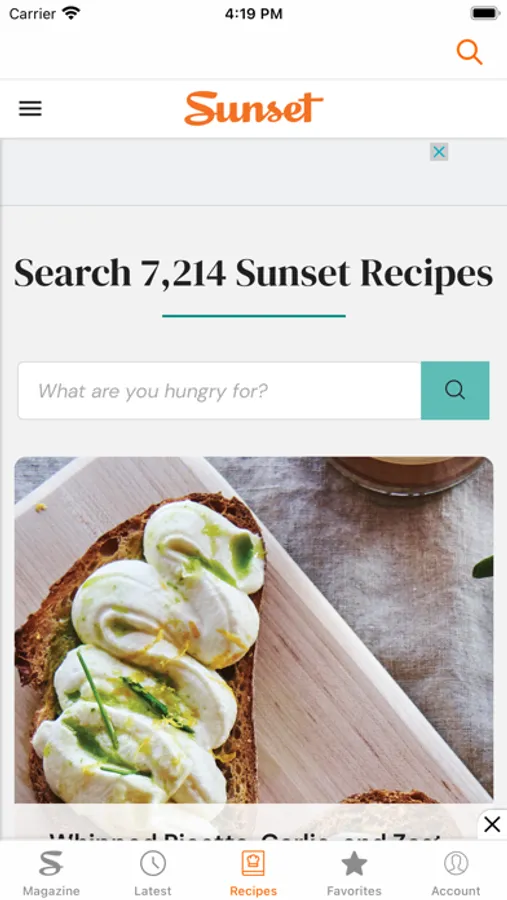 • RECIPE SEARCH: A new app section takes you to Sunset's growing database of recipes, where you can easily search through our thousands of entries, from dinners to desserts and so much more.