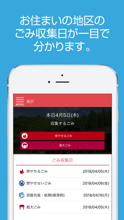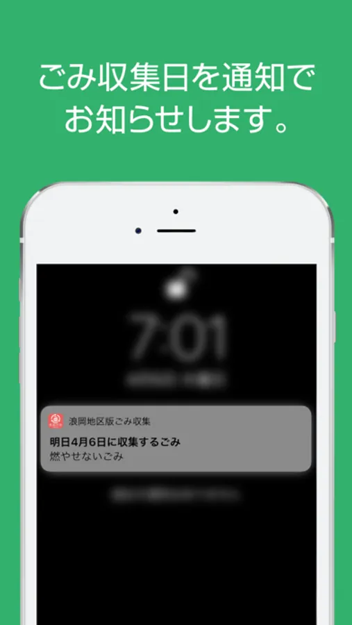 ごみ収集日の前日は19:00〜23:00・当日は4:00〜8:00の間に収集するごみを通知でお知らせします。