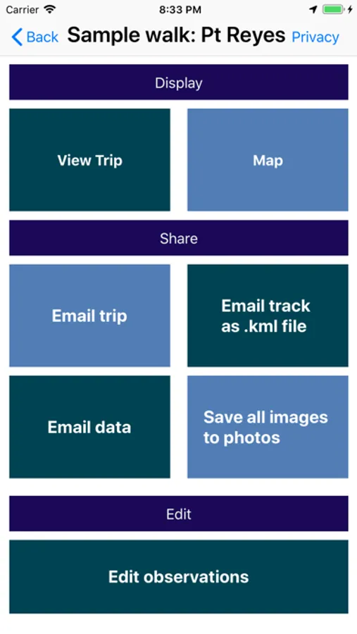 NatureNotes provides detailed tracking data for your walks, regardless of whether you are in cellular range or not. Tracks can be exported as KML or GPX files for use in other applications.