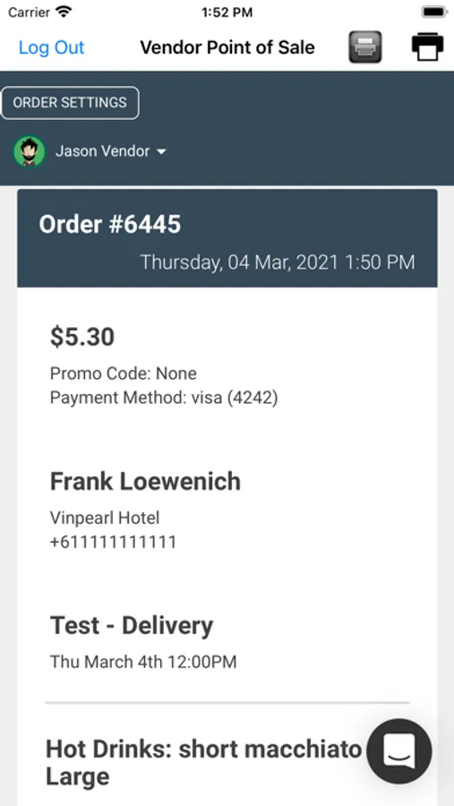 The Vendor POS is your portable point of sale system for Host enabled buildings. Connect it to your Bluetooth printer for automated docket printing.